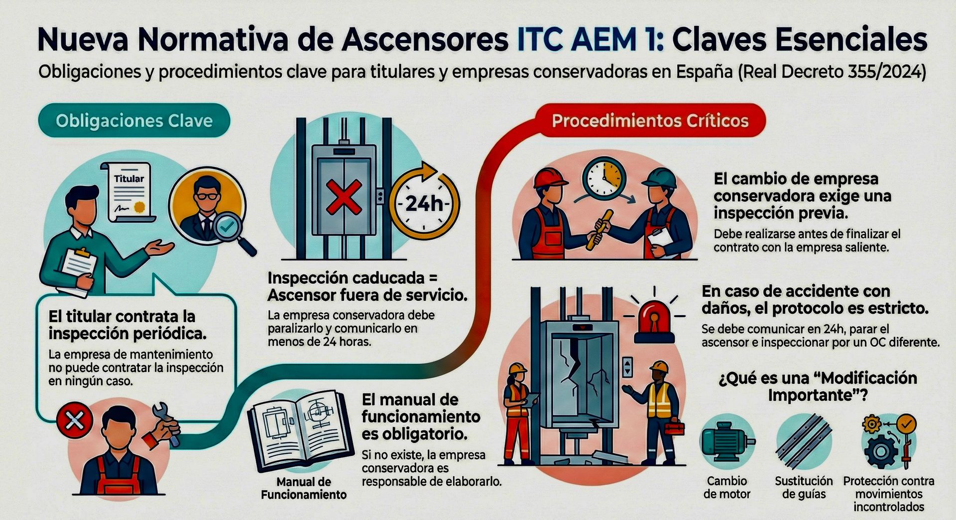 INFOGRAFIA DE LA NUEVA NORVATIVA DE ASCENSORES ITC AEM1